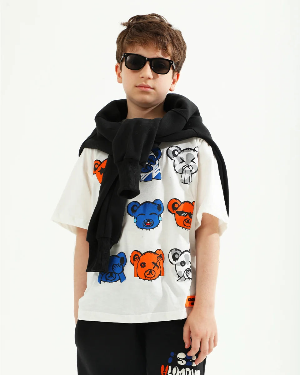 A estampa Mood ursos localizada adiciona um toque único. A gola de ribana, confeccionada em malha canelada, garante um acabamento sofisticado e confortável, completando o design com um toque de estilo adicional.