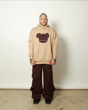 Essa hoodie traz o icônico ursinho em versão dark & stitched, com acabamento bordado que mistura rebeldia e estilo urbano. O visual oversized garante conforto e imponência, enquanto a modelagem solta conversa com qualquer fit streetwear. O bolso lateral com aba adiciona um toque funcional e exclusivo.