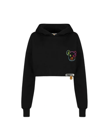Esse cropped traz a sofisticação ao streetwear, enquanto o urso bordado, com acabamento “dripping”, carrega a assinatura emocional da marca — imperfeito, intenso e verdadeiro.